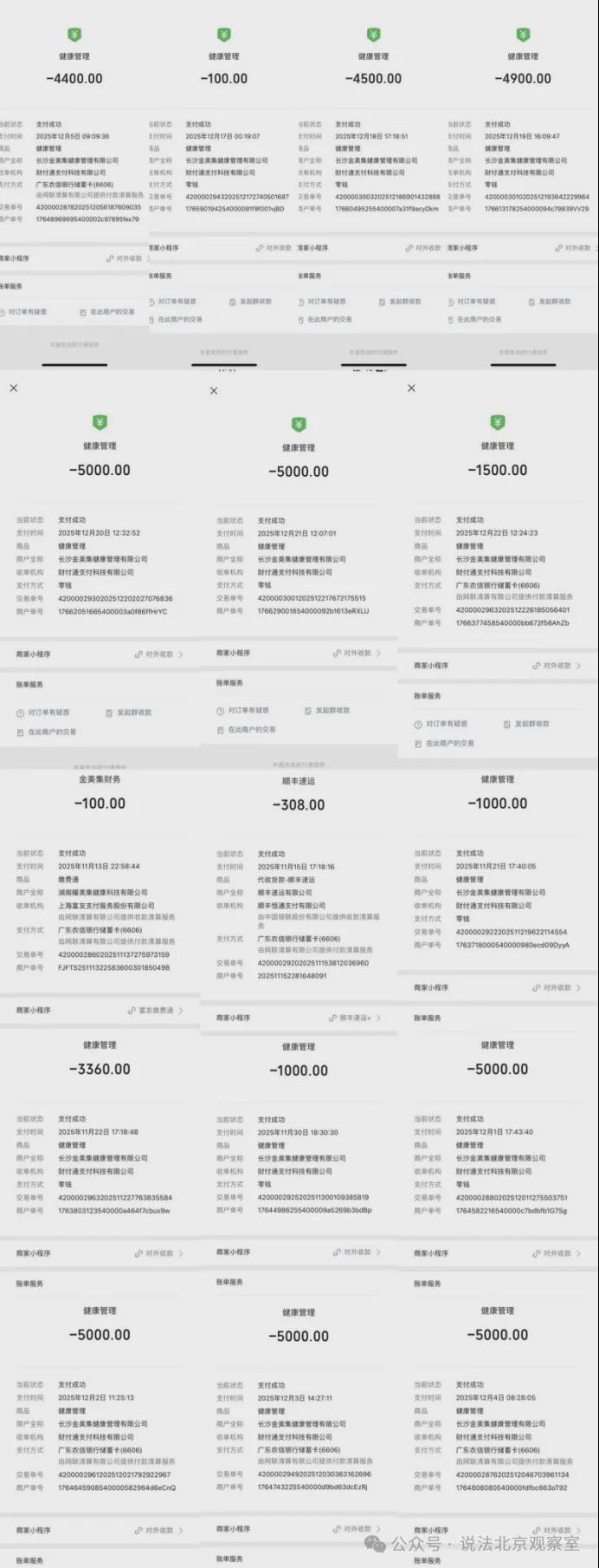 消费者B:本人遭遇长沙金美集健康管理中心严重欺诈,恐吓消费与侵权。2025年4月底,在快手平台看到调理月经的产品,以低价试一试的心态购买了产品,购买产品后,一名金美集健康管理中心第二分公司的李助理通过不明渠道获取了我的手机号,主动联系并加微信频繁沟通,说针对我月经时间不准、量少问题用480元的产品进行调节好,排出褐色分泌物就正常了,在她的诱导下买了四物经膏与和乐膏,用了两天后没排出褐色分泌物,她说我的情况比较严重,她要去找资深医生反映我这个情况。