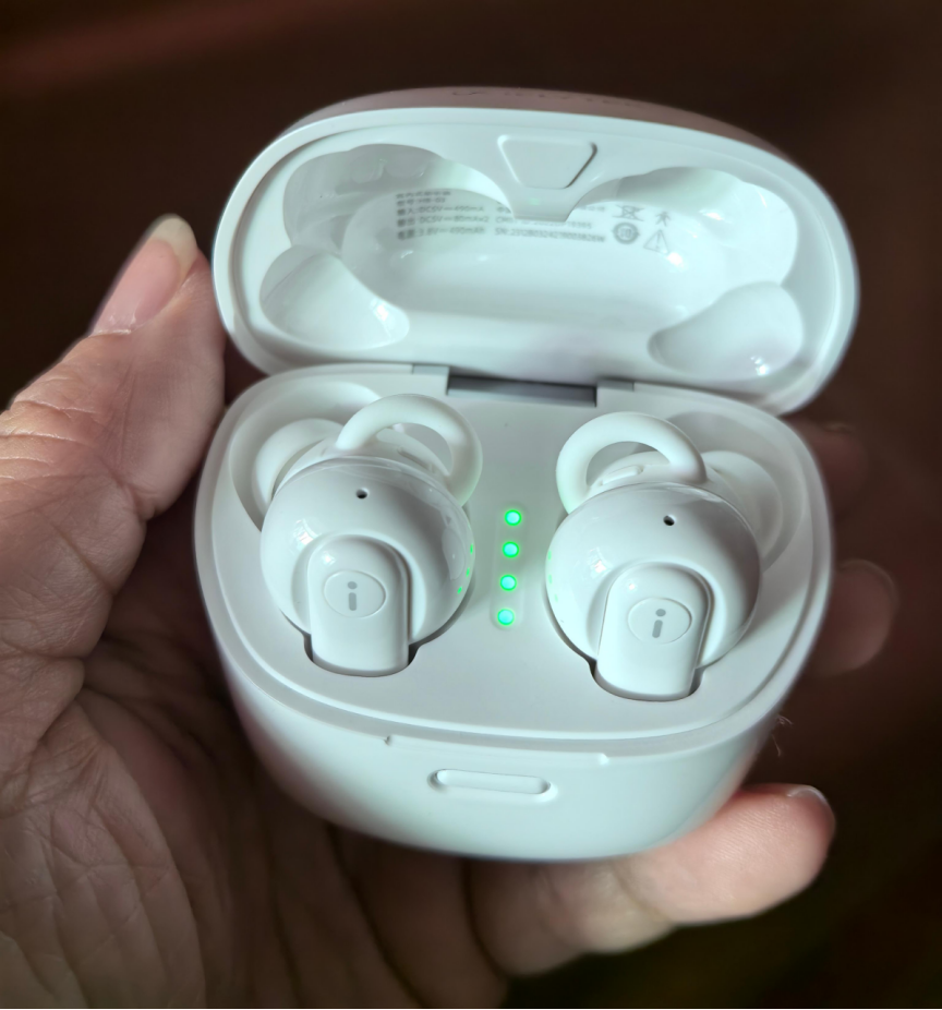 它的这款拿在手里质感扎实,充电盒磁吸设计很贴心。蓝牙直连稳定,看视频基本同步,延迟察觉不到。声音增益做得自然,像有人在耳边轻声复述。依靠的是双核声音处理架构,实时调整还算灵敏。不过周末家庭聚会一屋子人说话,交叉声浪中总漏听几句,反应总有滞后,需要别人重复提醒。