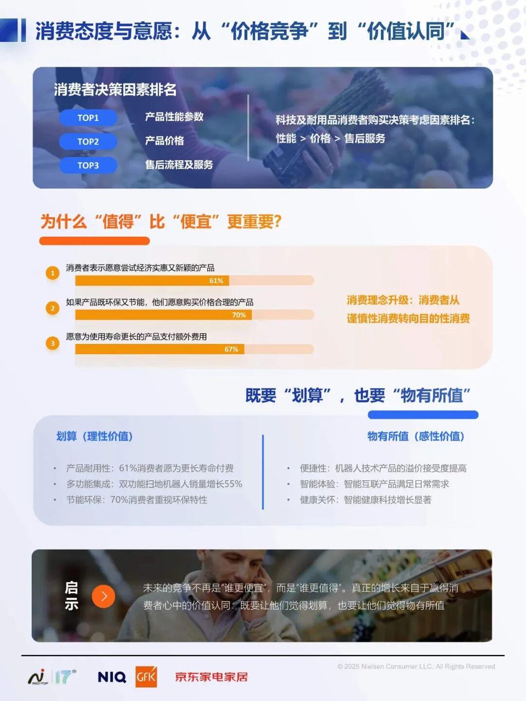 中国消费者信心指数在主要经济体中的强劲表现,为高端家电市场奠定了坚实基础,更推动了消费态度的深层变革——从关注价格到认同价值,成为当前消费决策的核心逻辑。报告数据印证了这一趋势:61%的消费者愿意为耐用产品付费,70%的消费者关注节能环保特性,智能互联、健康关怀等感性价值成为重要考量因素,超过六成消费者体验过AI功能产品,且愿意为其支付溢价。