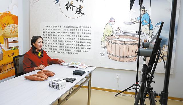 主播在直播间向网友展示粉皮制作的过程,讲解多样食用方法