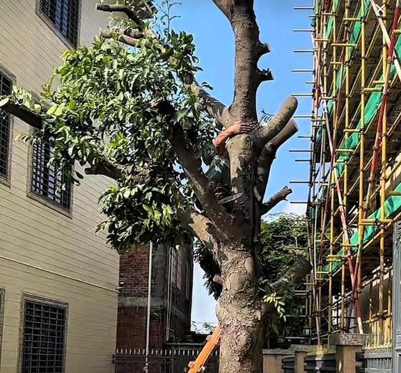 全飞飞家院子另一角还有一棵树,那棵长得更大。这次全飞飞顺便也让工人师傅给修剪了一下,一次性解决问题。