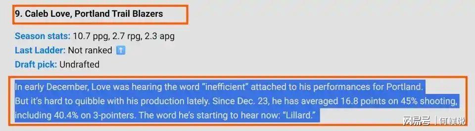 另外一方面,排在第九名的是很多球迷熟悉的名字,那就是乐福。乐福作为开拓者的落选秀,本赛季只拿到一份双向合同。但是在球队后卫多人受伤的情况下,他这一位落选秀意外在本赛季频频获得非常多的出场时间。如今经过了几十场比赛的锻炼之后,乐福这个落选秀硬是打了出来,现在登上了新秀榜的第九位,场均10.8分,2.7个篮板。