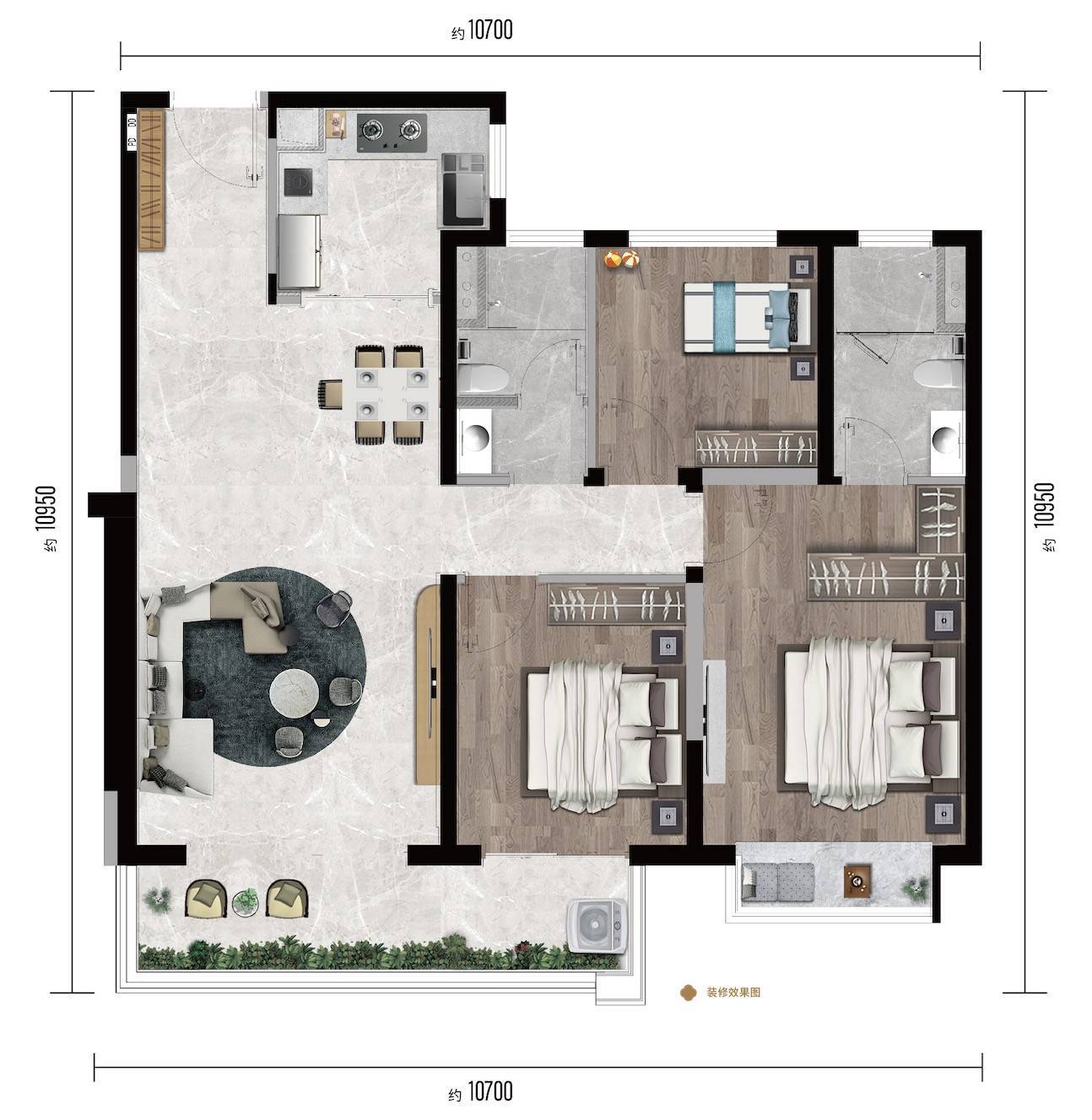 端头产品,5.8米大横厅,前后双阳台设计,餐客厅分区,明厨明卫,大三房改善产品