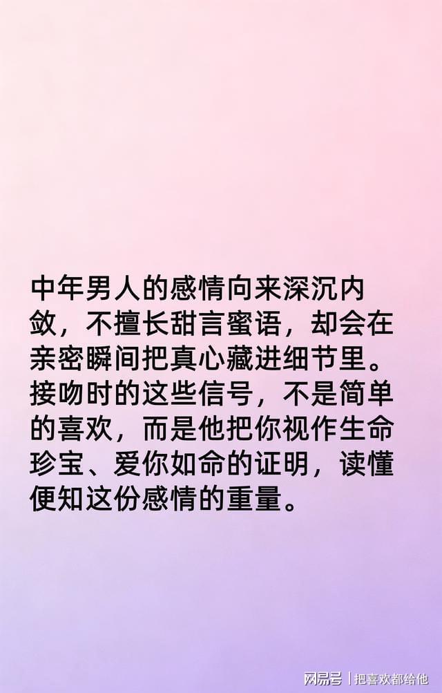 **为啥?**激素退潮,时间涨价,连睡觉都得排日程表。中年男人把吻当成“最后一张底牌”,不是调情,是签生死状:我忙到尿血,还肯把三秒空白留给你,你就别再问“爱不爱”。