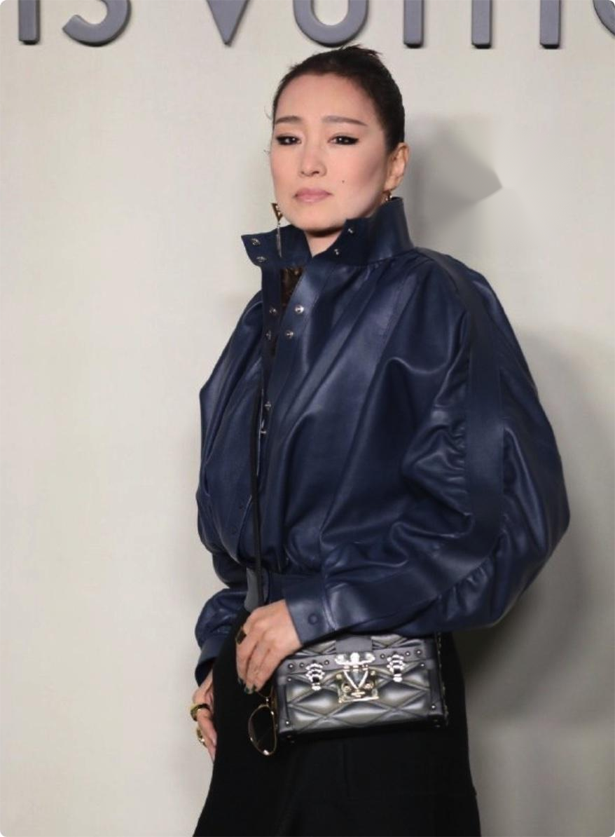 60岁的她身着深蓝色褶皱灯笼袖皮夹克,下搭黑色短裙,“厚黑系”穿搭在冬夜的寒风里显得格外飒爽。