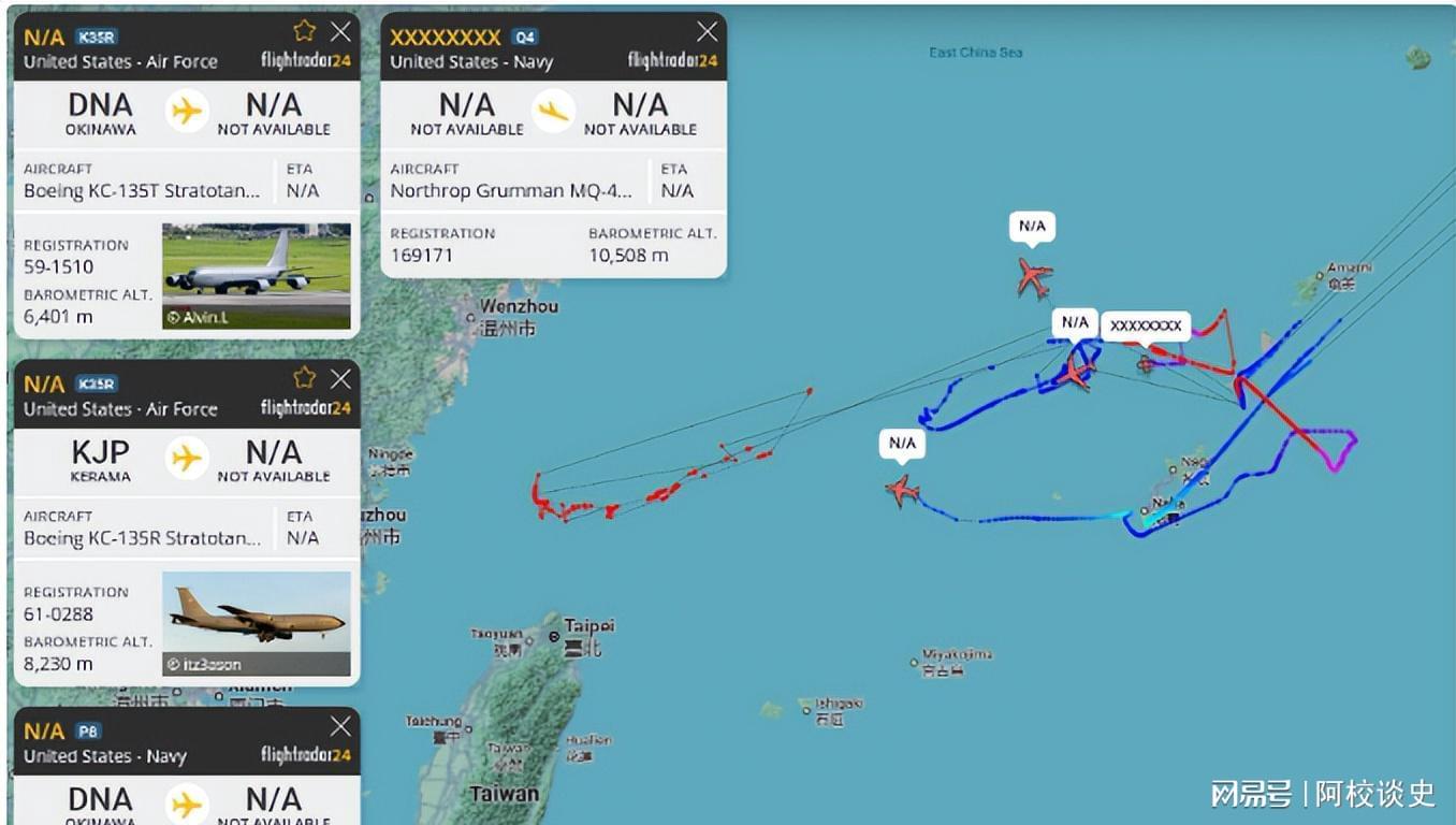 现在历史几乎原样复刻,8架KC-135先降落在夏威夷待命,已经有至少两架KC-135R和一架KC-46A加油机从檀香山起飞,一路向西飞越太平洋往亚洲方向赶,目标直指中国周边的琉球基地,这波操作根本藏不住要搞大事的心思。
