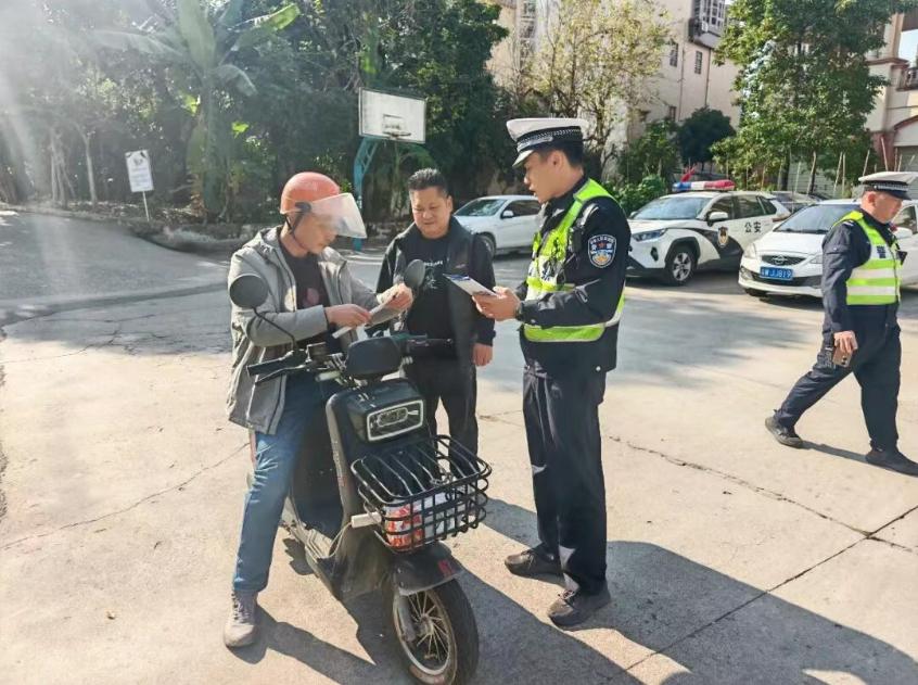 云浮市各辖区交管部门在中小学校等重点路口、路段设置劝导教育点,对接送学生家长未佩戴安全头盔、违规载人、逆向行驶等轻微交通违法行为,采取“教育为主、处罚为辅”的柔性执法模式,积极倡导“早点走、靠右行、慢慢开”的安全出行理念,引导骑乘人员自觉遵守交规,养成文明交通习惯。