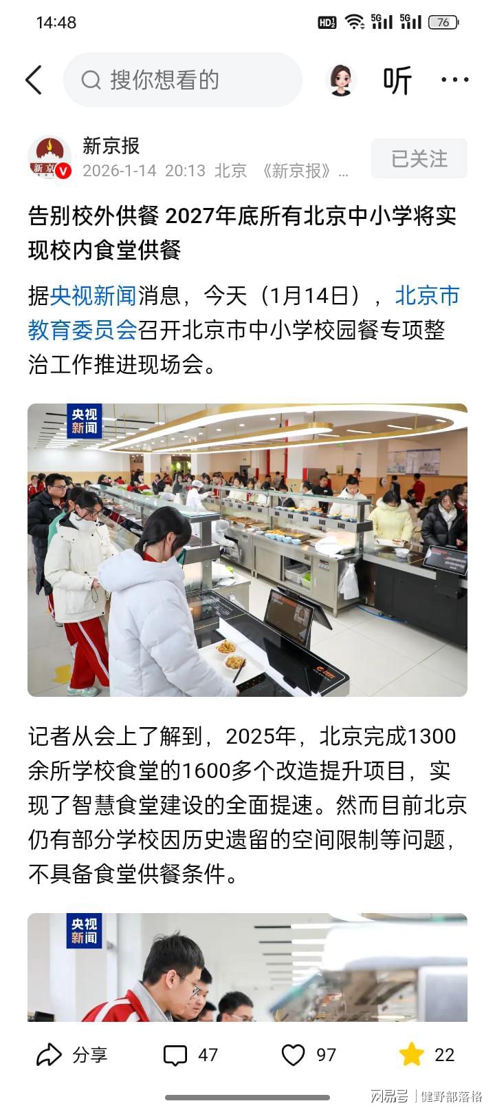 央媒从北京市教育部门证实,到2027年年底,也就是明年年底,北京所有中小学的校外企业供餐将全部变为学校自主管理的食堂来提供校园餐,这对于北京的家长们来说,肯定是一个好消息。
