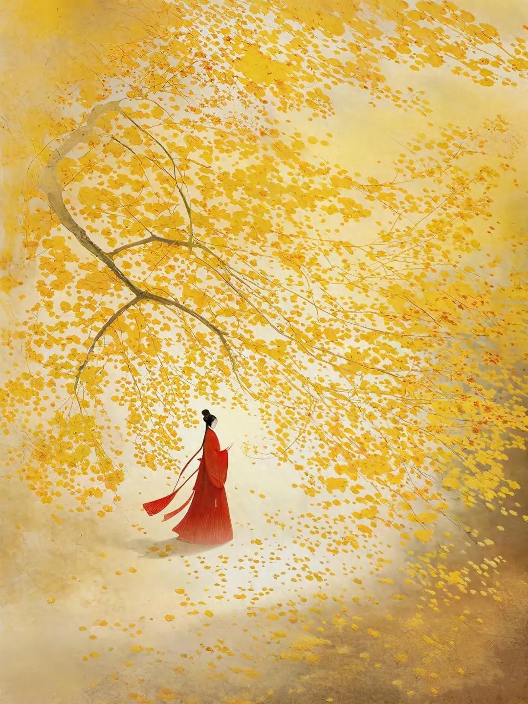 高楼之上,极目远望,黄昏的景色尽收眼底。此时,梧桐叶上落下萧萧细雨,清冷的雨声回荡在空气中。这句诗将黄昏、高楼、梧桐、细雨等意象巧妙地融合在一起,营造出一种优美而深情的气氛,让人感受到秋天的惬意和清新。
