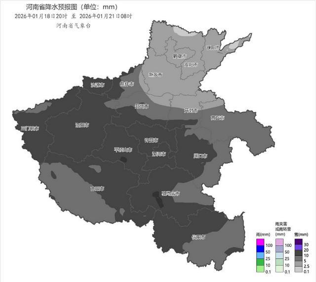 2026年1月18日20时-1月21日8时河南省累计降雪量预报