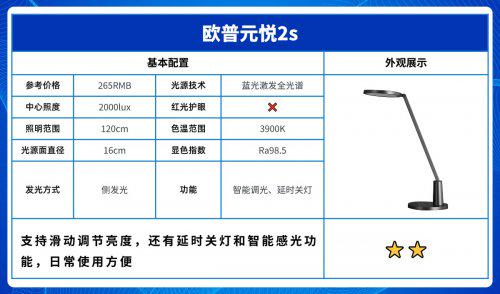 护眼台灯排行榜第六名:欧普元悦2s(推荐指数:⭐⭐⭐)