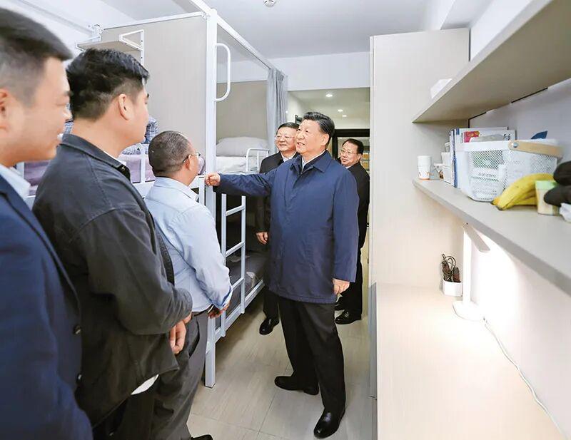 2023年11月28日至12月2日,中共中央总书记、国家主席、中央军委主席习近平在上海考察。这是11月29日下午,习近平在闵行区新时代城市建设者管理者之家考察时,在社区宿舍型出租房源租户的住房,了解在此居住的城市一线工作者的生活状况。 新华社记者 鞠鹏/摄