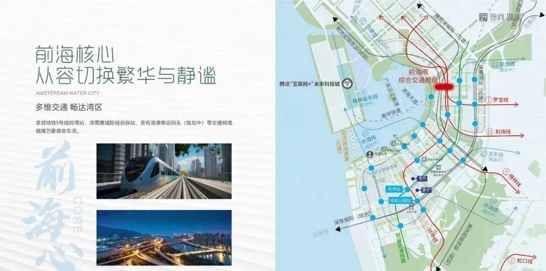 项目距离5号线荔湾站,步行700米便捷范围之内。同时一个站到铁路公园站规划了5号线与9号线换乘,未来将于宝安新老中心、南山重点区、蛇口、西丽、前海片区串联起来,此外,将还有15、21、27、穗莞深城际等多条轨道交通串联前海与其他重点片区。
