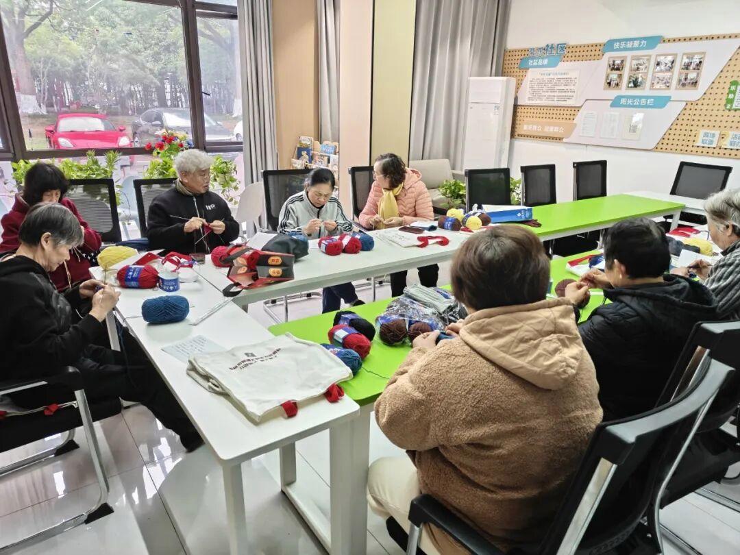 这支成立于2017年的编织队,由小区爱好针织的热心居民组成。每年冬天,她们都会将亲手织就的围巾、绒帽、手套等织物,赠送给社区独居老人、高龄老人及困难群体。近两年,看着外卖骑手、快递员等新就业群体风里来雨里去的奔波身影,阿姨们也渐渐将关怀的目光投向了这群户外劳动者。