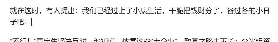 周宝生坚决反对,他说:“一分了之就是吃光老本,要想长久富裕,就必须集中力量办大事,推动产业升级。”