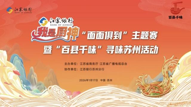江苏味道美食推广季活动火热进行中,不止苏超,还有苏味。1月17日,江苏银行“我是厨神·面面俱到”主题赛暨“百县千味”寻味苏州活动,全省十三座城市,各派顶尖面食高手,携带看家本领,齐聚苏州狮山文化广场,现场烹制最能代表城市味道的那一碗面。