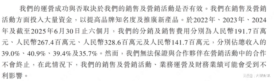 2022年至2024年,圣桐特医的营销及分销开支占总收入比例始终徘徊在40%左右,2024年更是高达约3.29亿元,相当于每卖出100元产品,就有近40元用于营销推广。