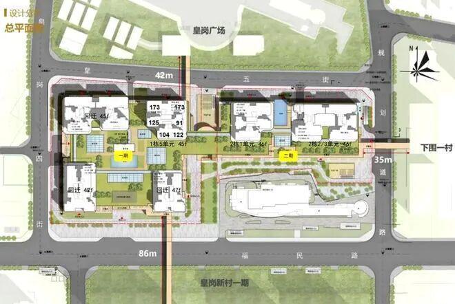 一期建设用地面积约3.1万平,总建面约22.5万平,容积率5.07,计容建面约15.9万平,一二期共用规划停车位1266辆。其中,住宅约10.2万平,商业约4.1万平(地上+地下)。5栋建筑,其中4栋为回迁物业。
