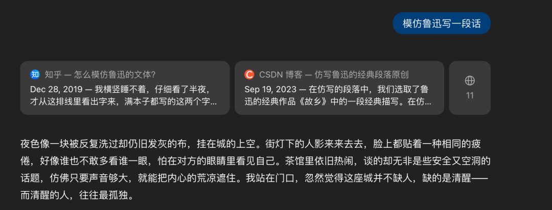 比如你让他模仿鲁迅的文笔,写一段话。