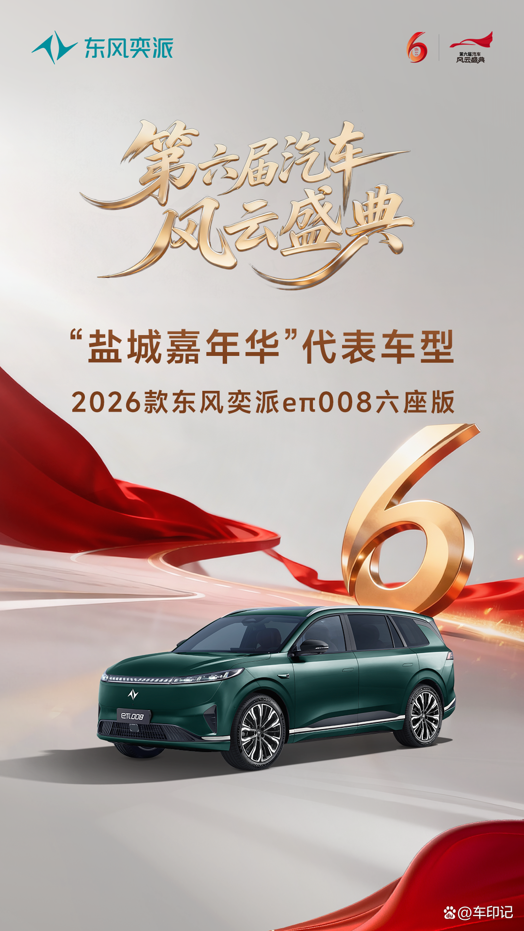 此次入选“第六届《汽车风云盛典》‘盐城嘉年华’代表车型”,既是对2026款东风奕派eπ008六座版产品实力的高度认可,更彰显了东风奕派在家庭新能源出行领域的持续突破。未来,东风奕派将继续以用户需求为核心,深耕技术创新,为中国家庭带来更多兼具安全、舒适与智能的出行选择,助力央企品牌迈向更高质量的发展新阶段。