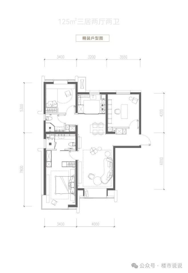 例如125㎡三居得房率提升,主卧带270°转角窗;220㎡五居使用率近95%,适合多代同堂。