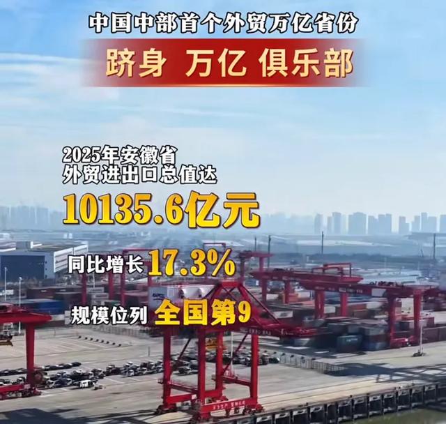 可就在2025年,一个硬核数据刷新了所有人的认知:安徽外贸进出口总额突破1万亿元大关,成为中部六省中第一个、全国第九个迈入“万亿外贸俱乐部”的省份。