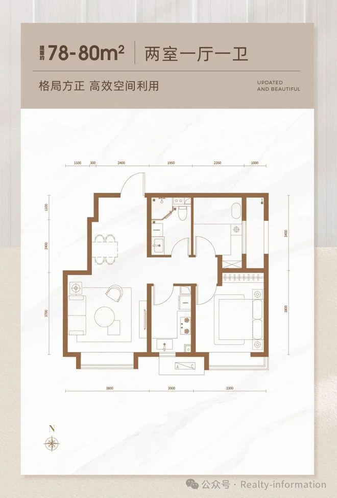 建面约78㎡-80㎡两居 东西通透 动静分区 宽尺度双卧↓