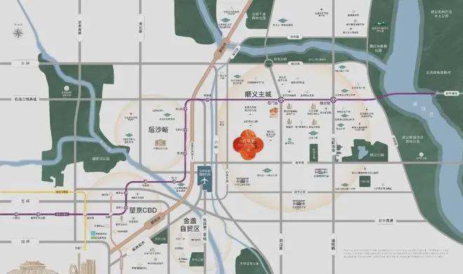 四纵三横路网——京承高速、京密路、京密路2期,通顺路与外环路组成四纵高速路网,迅捷连通东六环、望京商圈、北京城市副中心及首都机场等核心区域;顺平路、顺沙路,白马路三横路网围合起商圈、学校、医疗、公园、地铁俱全的全维配套生活圈
