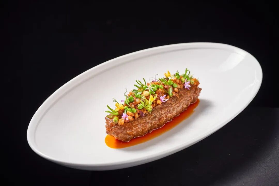 一道道精美的菜品犹如艺术品般登上餐桌。蚂蚁上树松叶蟹:5年豆瓣的陈香,红头蒜苗的清香,鲜美的手拆松叶蟹肉,绽放新颜。夫妻肺片:将食材白卤后改刀切片,再搭配水果笋、三青笋和红萝卜,与四川的红油、花椒面等调味料碰撞融合......每道珍馐皆让舌尖惊喜,在这用席是视觉、嗅觉、味觉的三重享受。