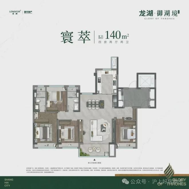 约 140 ㎡超配四房洋房,奉贤龙湖御湖境售楼处电话☎:400-822-5005【预约☎】奢阔双厅南北通透,还可改造成约8m巨幕宽厅,