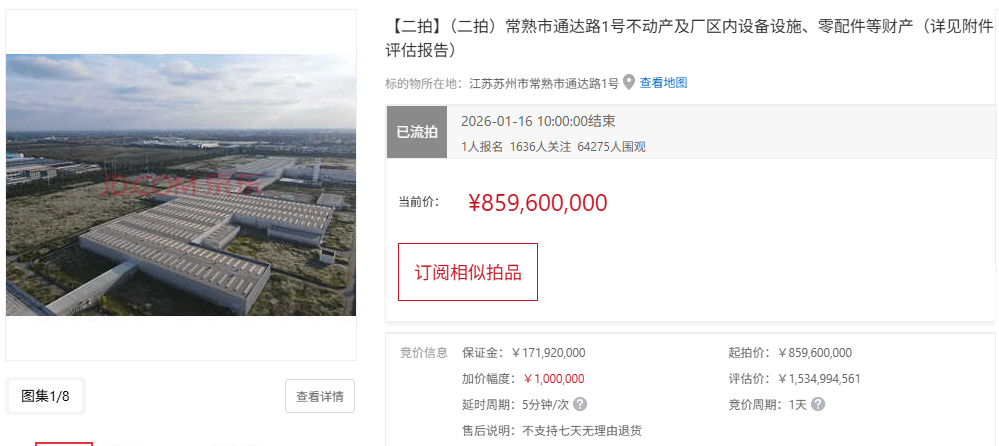 每经AI快讯,1月16日,京东资产交易平台显示,观致汽车常熟工厂二次拍卖已流拍,6.4万人围观了此次拍卖。此前,宝能集团董事长、观致汽车实控人姚振华发布实名举报视频,称常熟工厂核心资产被低估拍卖。对此,常熟市委宣传部相关负责人15日回应称,相关指控不属实。