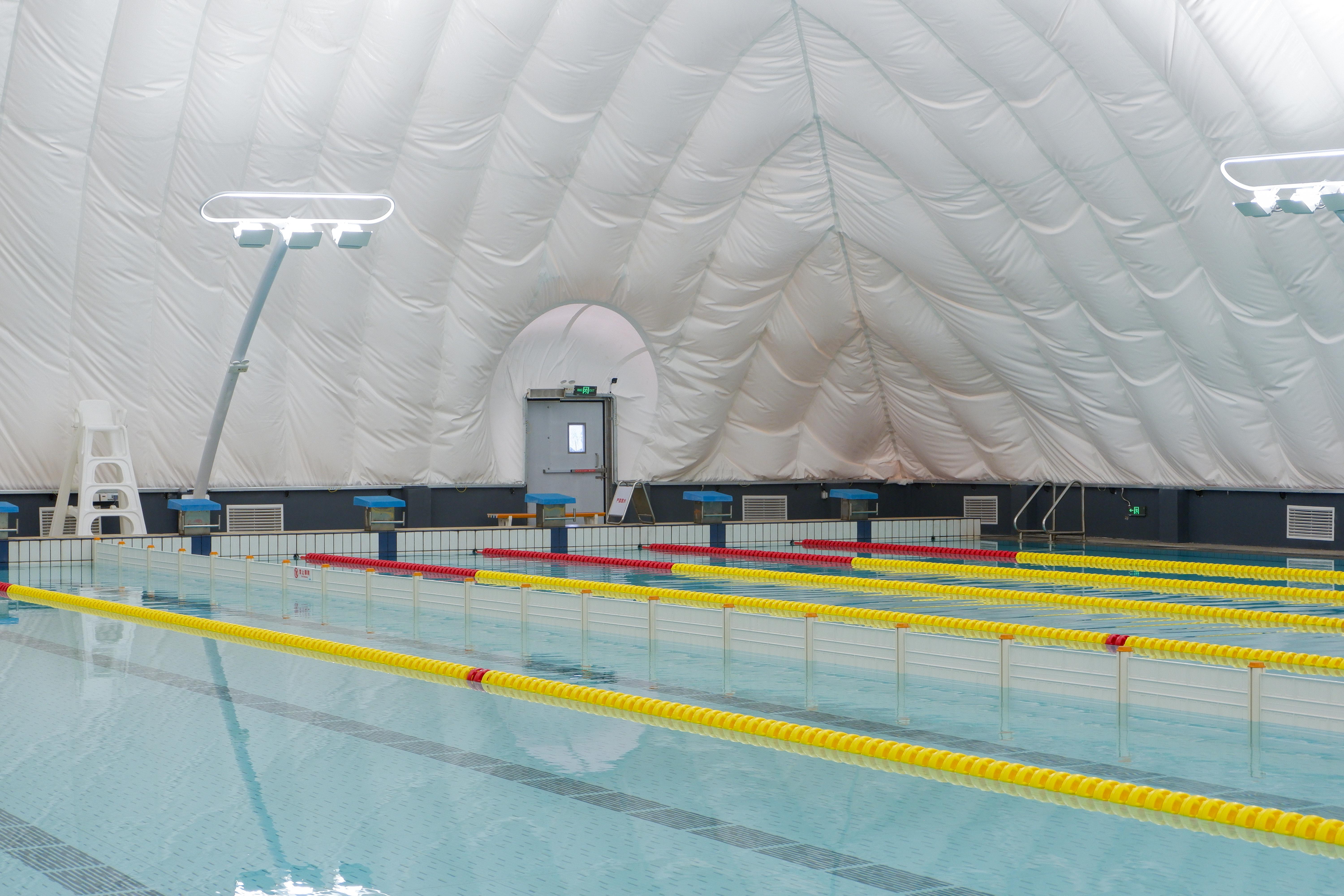 中成空间气膜应用广泛,已覆盖50 + 应用场景,适用所有需大跨度、低成本、快速建造封闭空间的领域,包括智慧工业仓储、民用气膜产品、气肋气膜以及特殊工程场景等。以浙江金华职业技术大学气膜游泳馆项目为例,该项目解决了露天泳池在恶劣天气下无法使用、有效运营时间短的问题,为师生创造了恒温舒适环境,实现了全天候运营,丰富了校园生活。此项目不仅是中成空间在“气膜 + 游泳”领域的一次成功创新实践,也为类似校园设施的升级改造提供了可借鉴的范本。