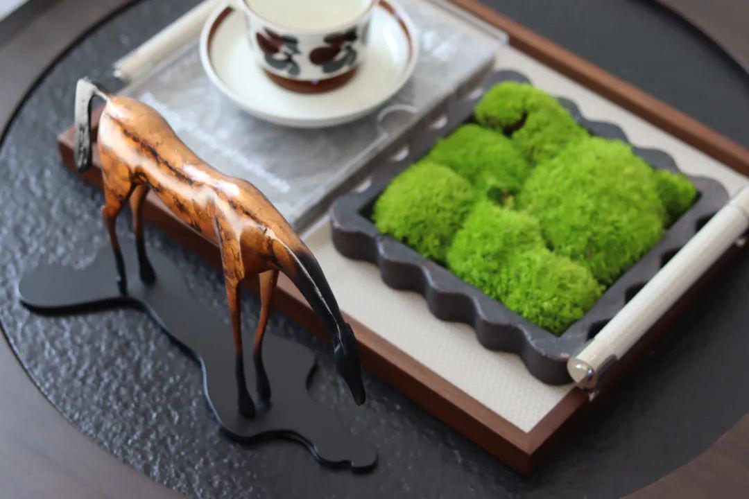 通道与餐厅之间的视觉重点是葡萄牙的家居品牌Mezzo的Lester餐柜,这款独特的餐柜是对50年代和60年代致敬,以现代方式重新诠释复古经典。意大利设计师的创意悬浮餐厅吊灯,以其独特魅力照亮空间。自由曲线的设计,灵动而优雅。搭配大理石餐桌和原木餐椅,增添自然质感。在这里用餐不只是简单的行为,更是一场享受创意与舒适的美妙体验。