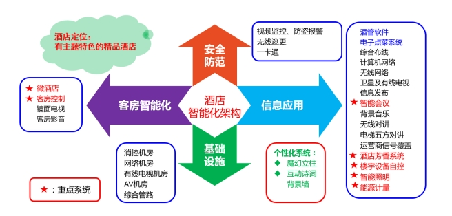 酒店弱电智能化系统通常包含多个子系统,用于提升运营效率、服务质量和宾客体验。下面是一个清晰、专业、可直接用于方案或汇报的总结。