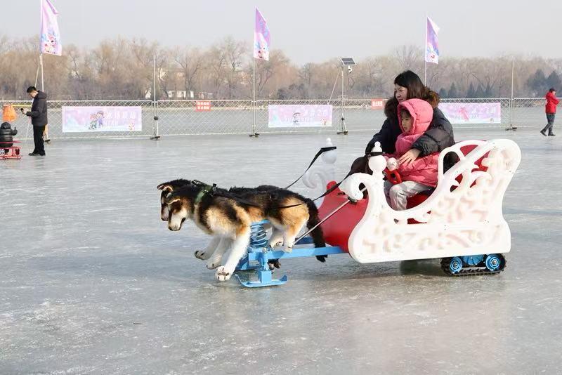 记者在玉渊潭公园看到,位于公园东湖南岸的冰场,以东湖南码头为界划分为东、西两区,1400辆各式冰上娱乐设施满足不同年龄段的游客需求。其中西区主打经典冰上项目,既有传统的冰车与冰上自行车,也有让孩子们欢呼雀跃的“雷霆战车”;东区除了传统冰车以外,还增添了卡通电动冰车、憨态可掬的狗拉雪橇冰车,以及特意为马年推出的马拉冰车等,更适合亲子互动与趣味体验。两区分别实行通票制,可不限时畅玩冰车与冰上自行车,若想体验电动类的冰车,则需另行购票。为提升服务品质与游玩体验,两个冰场采取分区售票、独立运营,门票仅限指定冰场使用,请游客购票时留意所选区域,合理安排行程。