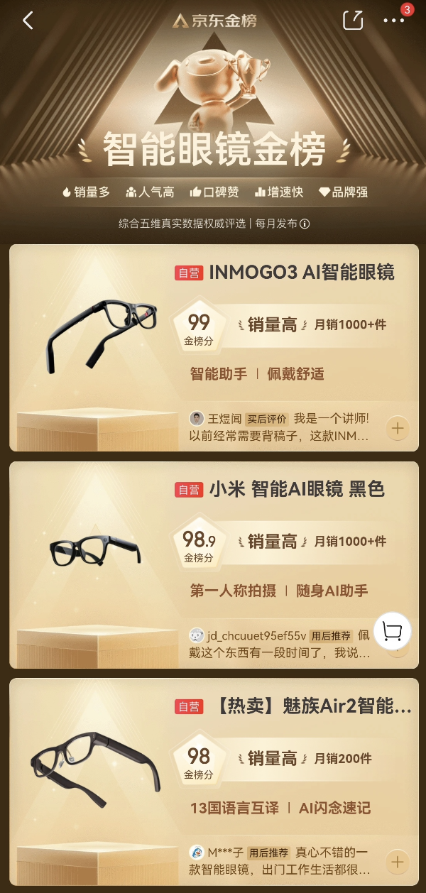 霸榜京东金榜,连续五年领跑一体式AI+AR眼镜市场