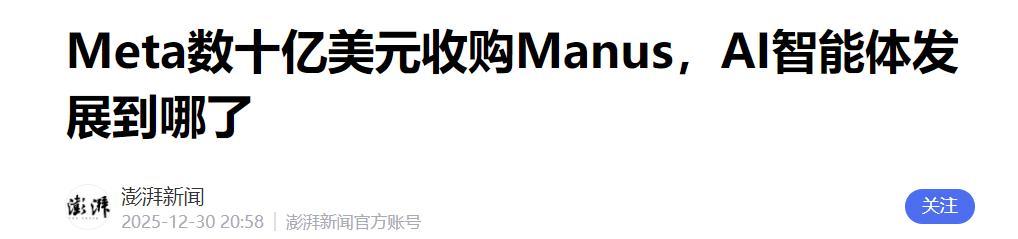 - 当美国科技巨头Meta有意收购AI初创企业Manus的消息首次曝光时,舆论一度将其视为中国人工智能技术走向全球的标志性事件。然而,这一乐观情绪很快被商务部的一纸审查通知打破,交易前景急转直下。