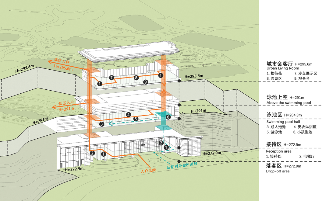 而且项目本身整体抬高了约20米,远看就像悬浮在城市极核的绿洲岛屿,完美避开了外界的喧闹嘈杂。