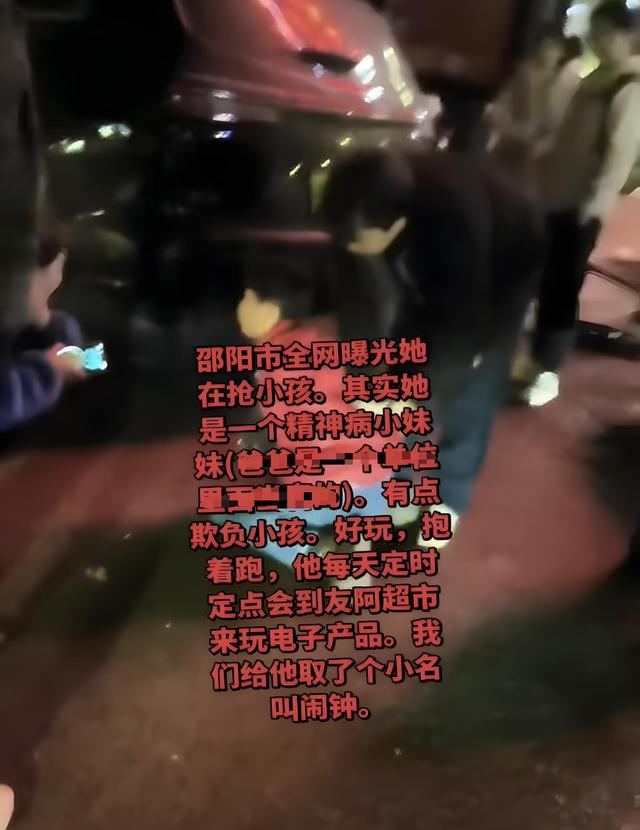1月13日晚上,邵阳社区有点闹,一个穿红衣服的女人,好像在抢小孩,有人说是这样,妈妈在喊救命,路人就拦着她,后面警察来了,把那个红衣服的女人带走了。