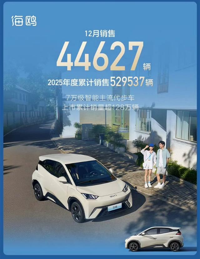 近期,比亚迪海洋网发布2025年最新销量,旗下7万级智能主流代步车——海鸥延续爆款实力,12月单月销售44627辆,年度累销达529537辆,凭借坚持精品化发展路线,不断迭代升级卓越产品实力,持续推动新能源A00级市场发展向新。
