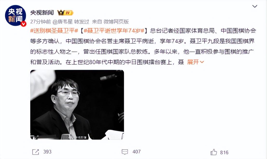 棋圣聂卫平的离世轰动全国。