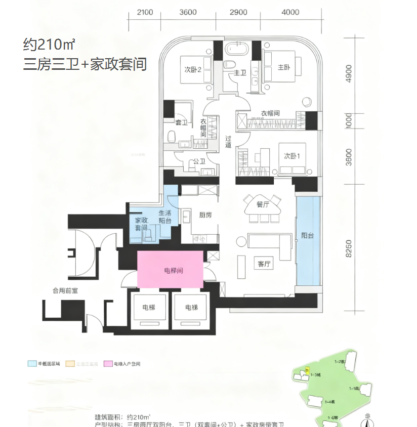 210㎡4房2厅2卫: 305㎡4+1房2厅3卫