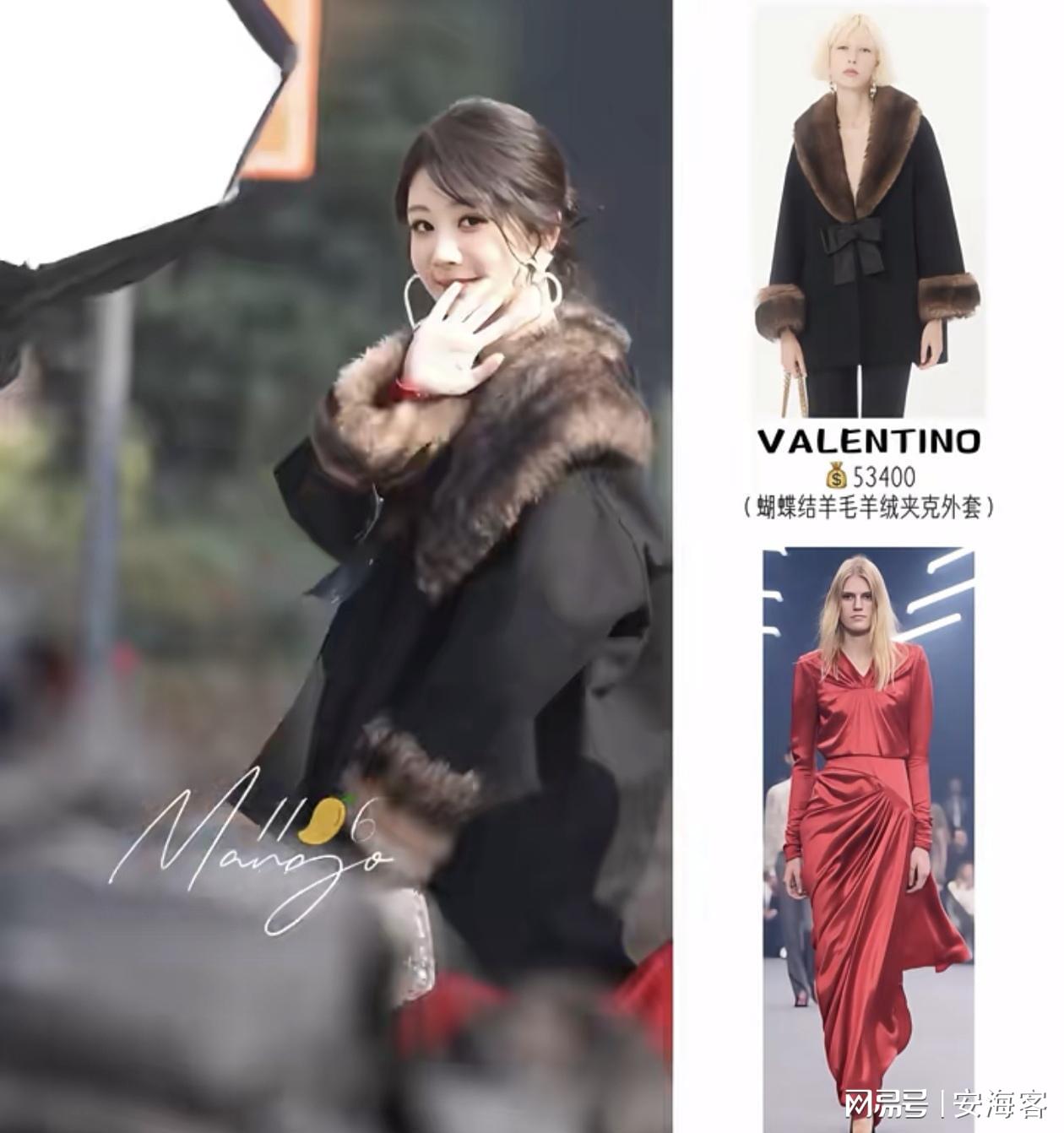 礼服直接照搬的华伦天奴2026年春夏的整套,只是把容易显腿短的凉鞋,换成了高跟船鞋,显腿修长。