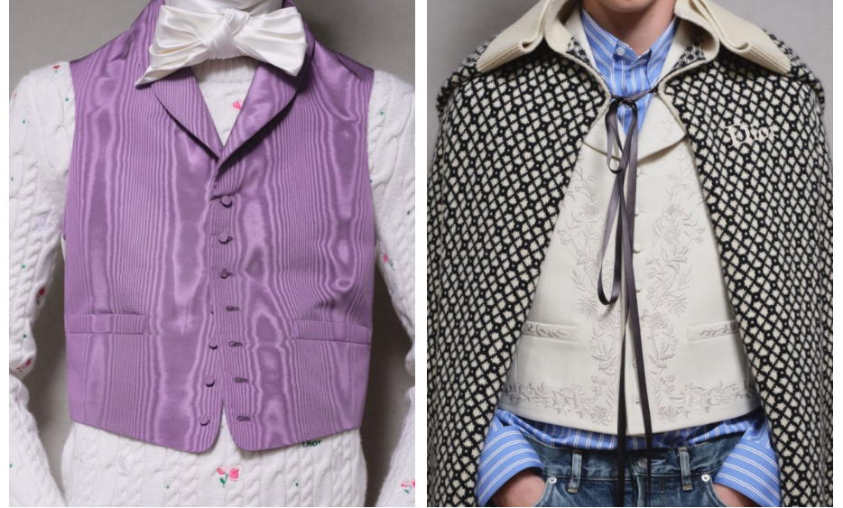 本季系列试图在“着装的喜悦”中找到过去与当下的共鸣。乔纳森·安德森借助品牌典藏的廓形——从“迪奥套装”(Bar Jacket)、燕尾服到十八至十九世纪男士马甲——构建出一种新的仪式感。多尼戈尔粗花呢与军团领带的运用,使正装的设计语言焕发新的活力。
