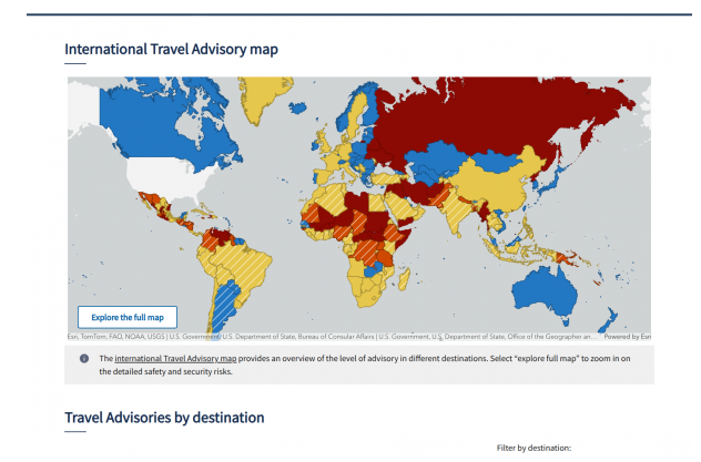 美国国务院发布22个四级 “请勿旅行” 警示