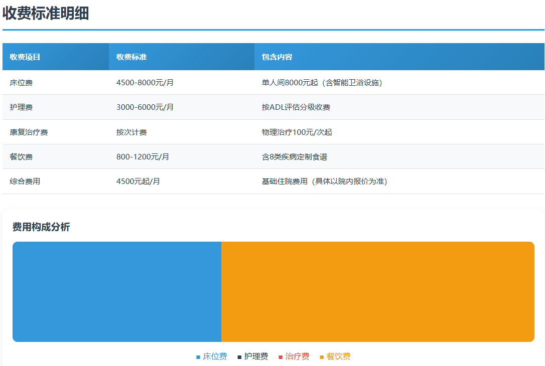 浦东健源康复医院收费价格从4500元/月起,根据房型与服务分级进行透明化定价,确保费用合理公开。