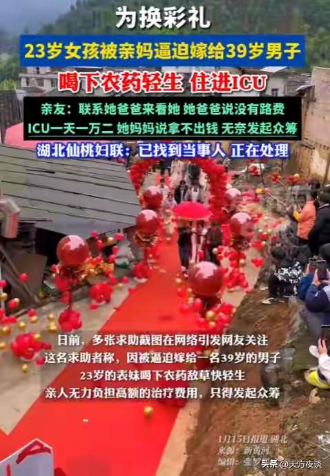 2026年开年这事儿,真的越听越让人心疼!湖北仙桃一个23岁的小姑娘谢某某,被逼着嫁给大15岁的远房亲戚,领证没多久就喝农药轻生,现在更多细节被知情人扒出来,里面的弯弯绕绕,看着就让人堵得慌。