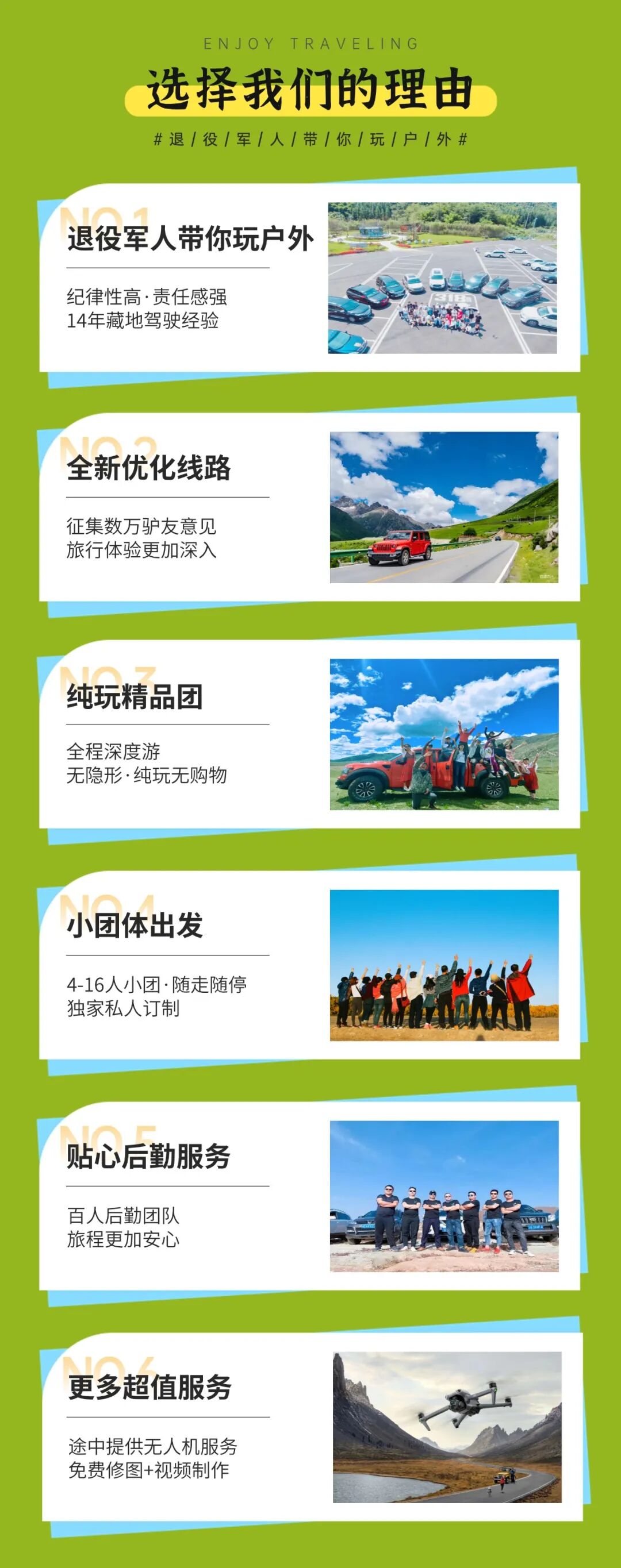 和我们一起出发海拔只是一个数字而已,因为我们有应对高反整套方案,不管是氧气还是抗高反的药品我们都是随车配备,最重要的是我们有最棒的高原旅行领队和司机,他们都是经验丰富的老司机,所以和我们出行你只需要带上愉快的心情出发就好!