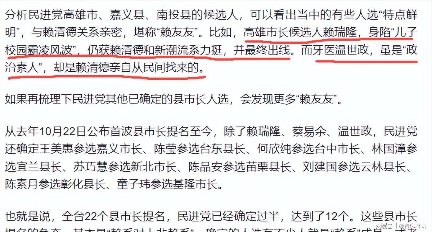 这些被外界戏称为“赖友友”的候选人,要么是长期追随赖清德的嫡系,要么是与他有深度利益绑定的政治盟友。