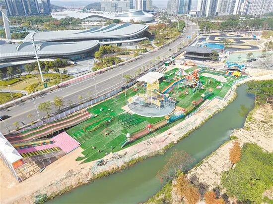 该项目负责人王新中介绍:“无动力游玩设施将于春节前完成安装并对外开放,项目整体预计于今年6月全面竣工,周边绿化升级工程同步开展,花海景观已完成种植,届时将成为市民打卡新地标。”据悉,观澜湖综合游乐场属于土地“1.5级开发”项目,投资方租赁91亩土地,总投资达2.3亿元,计划打造集美食、休闲、娱乐于一体的综合性文旅项目。